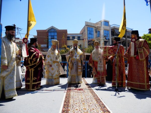 Μέσω της καθιερωμένης διαδρομής (Ζωοδόχου Πηγής, Μιχαλοπούλου, Ερμού, Ασημάκη Φωτήλα) η πομπή έφθασε στις 11.45π.μ. στην πλατεία Αγίας Λαύρας, όπου αναπέμφθηκε δέηση και ακολούθως ο φιλοξενούμενος Σεβασμιώτατος Μητροπολίτης Γόρτυνος και Μεγαλοπόλεως κ. Ιερεμίας εξεφώνησε την πανηγυρική ομιλία.