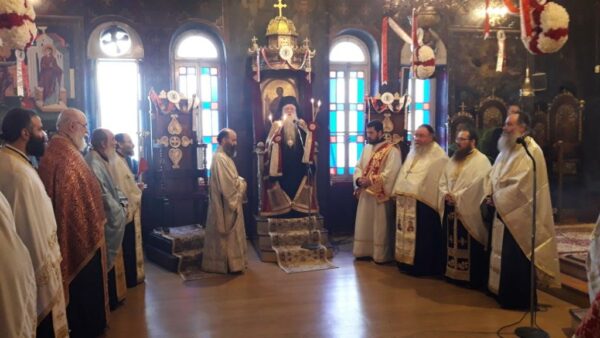 Σήμερα, ανήμερα της εορτής, τελέσθηκε Αρχιερατική Θεία Λειτουργία, προεξάρχοντος του Σεβασμιωτάτου Μητροπολίτου Πατρών κ. Χρυσοστόμου και συλλειτουργούντων των Σεβασμιωτάτων Μητροπολιτών Γόρτυνος & Μεγαλοπόλεως κ. Ιερεμία και Καλαβρύτων & Αιγιαλείας κ. Αμβροσίου. Τον Θείο Λόγο κήρυξε από άμβωνος ο Σεβασμιώτατος Μητροπολίτης Πατρών κ. Χρυσόστομος, ο οποίος αναφέρθηκε με λόγια γλυκά για την Υπεραγία Θεοτόκο.
