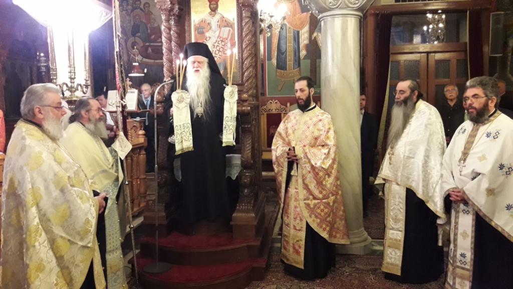 Με τη συμμετοχή εκατοντάδων ευσεβών πιστών τελέστηκε το απόγευμα της Κυριακής στον Ιερό Ναό Αγίων Κωνσταντίνου και Ελένης και Θεοπρομήτορος Άννης ο Μέγας Πανηγυρικός Αρχιερατικός Εσπερινός του Ευαγγελισμού της Θεοτόκου, χοροστατούντος του Σεβασμιωτάτου Μητροπολίτου Καλαβρύτων κ. Αμβροσίου, πλαισιωθέντος από ιερείς τής Ιεράς Μητροπόλεως.