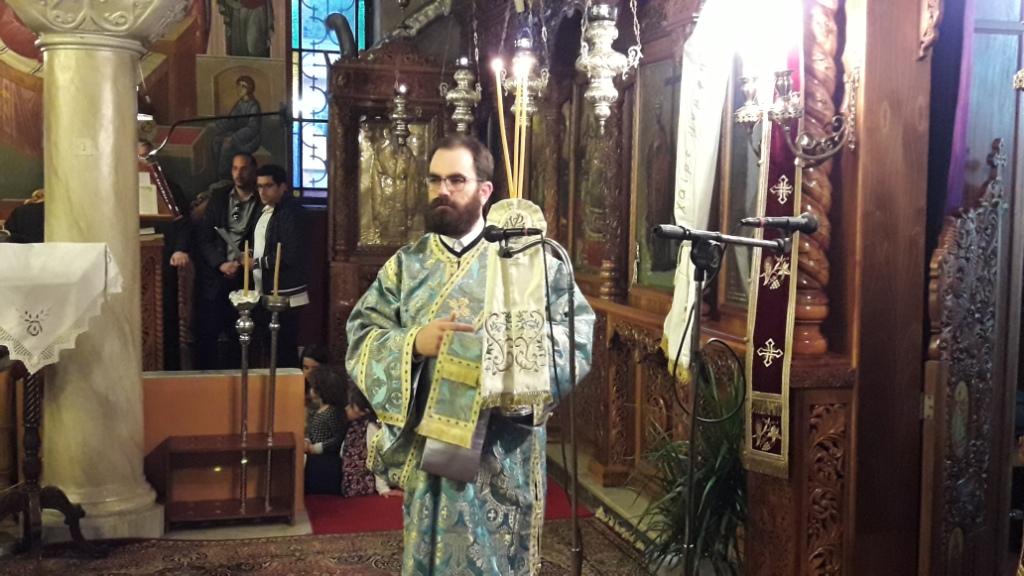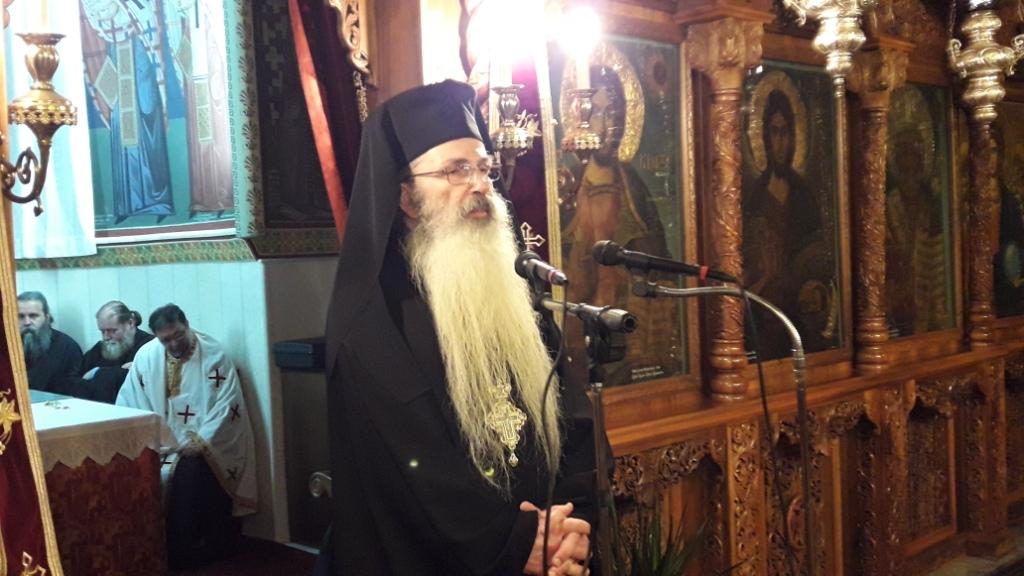 Τον Θείο Λόγο κήρυξε ο προσκεκλημένος εκ της Ιεράς Μητροπόλεώς, Πανοσιολογιώτατος Αρχιμανδρίτης π. Αστέριος Χατζηνικολάου, Προϊστάμενος της Αδελφότητος Θεολόγων «Ο Σωτήρ» με θέμα «Το μεγαλείο της υπακοής».