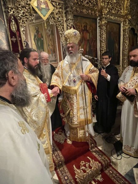 Στη Θεία Λειτουργία συμπροσευχήθηκε ο Μητροπολίτης πρώην Καλαβρύτων και Αιγιαλείας κ. Αμβρόσιος.