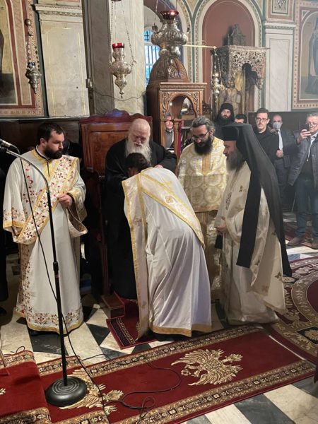 Αναφέρθηκε με ιδιαίτερη συγκίνηση στους κεκοιμημένους γονείς του, ενώ, τέλος, ευχαρίστησε τον Σεπτό Ποιμενάρχη για την πατρική αγάπη και τις πολύτιμες πνευματικές συμβουλές, με τις οποίες τον καθοδηγούσε κατά το χρονικό διάστημα της διακονίας του, ζητώντας τη συγχώρησή του για όσες παραλείψεις ή τυχόν λάθη έκανε.