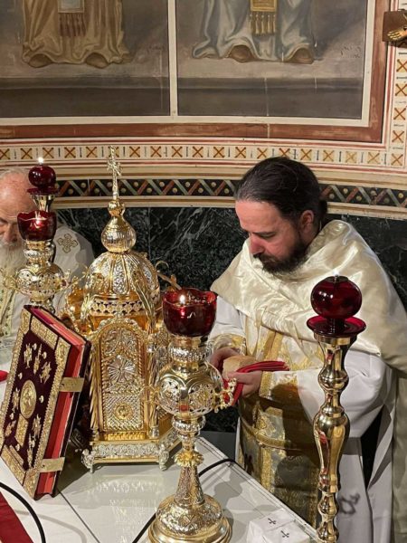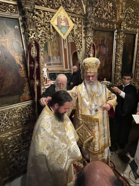 Μετά τη Θεία Λειτουργία, ακολούθησε μοναστηριακή τράπεζα, μετά το τέλος της οποίας οι παρευρισκόμενοι ευχήθηκαν στον νέο Πρεσβύτερο.