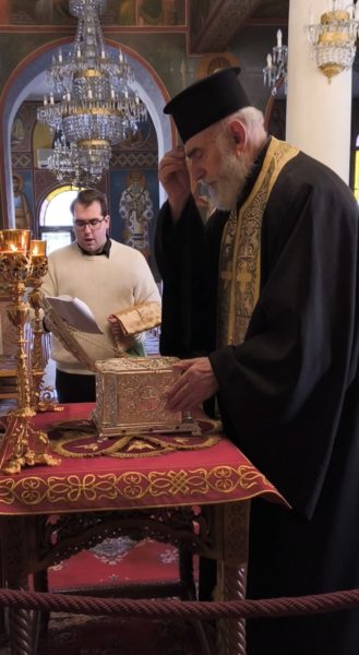 Την Κυριακή 19 Ιανουαρίου, τελέσθηκε Αρχιερατική Θεία Λειτουργία στον ως άνω Ιερό Ναό. Στην ομιλία του ο Ποιμενάρχης αναφέρθηκε στον βίο, αλλά και στο ιστορικό της Αγιοκατάταξης του Οσίου Χριστοφόρου. Ευχαρίστησε τον Πανάγαθο Θεό για τη μεγάλη ευλογία στην Τοπική μας Εκκλησία, που σε χρόνους ζοφερούς για την Ορθοδοξία, αναδεικνύει Αγίους, Οσίους και φωτισμένους Πατέρες, ενισχύοντας με αυτό τον τρόπο την πίστη μας και την ελπίδα μας σ’ Αυτόν.