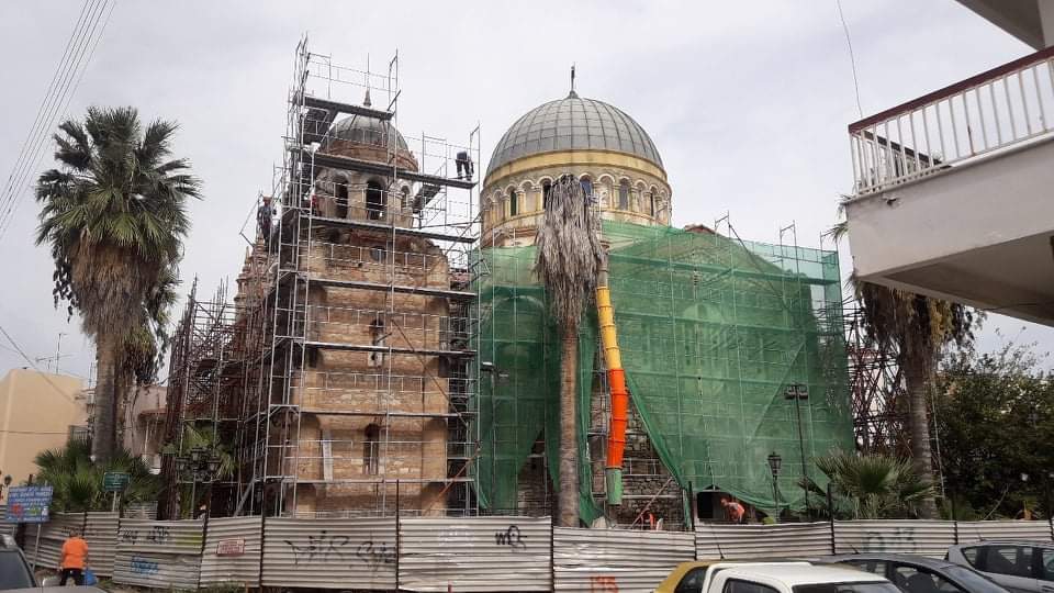 Στους δε εργαζόμενους απηύθυνε εγκάρδιες ευχές για καλή δύναμη και κουράγιο, ευχόμενος συνάμα η Παναγία μας να είναι σκέπη και προστασία τους, ώστε σύντομα να δούμε και πάλι το αριστουργηματικό αυτό μνημείο να κοσμεί την πόλη του Αιγίου.