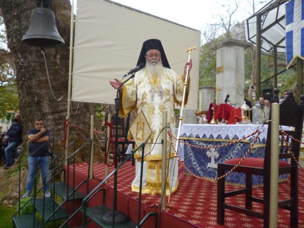 Από την πλευρά του ο Σεβασμιώτατος Μητροπολίτης Καλαβρύτων και Αιγιαλείας κ. Ιερώνυμος, στην σύντομη ομιλία του στο τέλος της Θείας Λειτουργίας, αφού πρώτα ευχαρίστησε τους Σεβασμιωτάτους Μητροπολίτες Φιλίππων, Νεαπόλεως και Θάσου κ. Στεφάνο και Σερβίων και Κοζάνης κ. Παύλο, οι οποίοι, όπως σημείωσε, λάμπρυναν με την παρουσία τους την εορτή, στην συνέχεια, μεταξύ άλλων, ανέφερε: