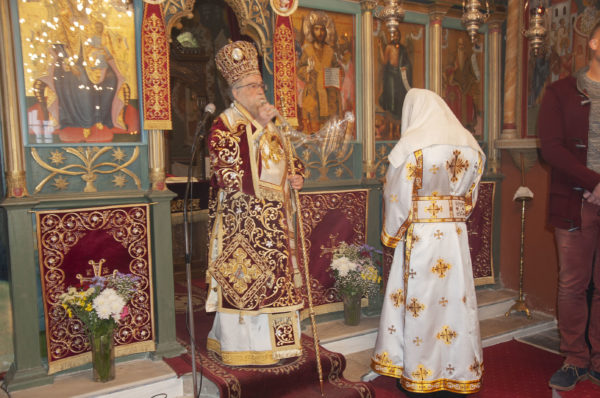 Ο Σεβασμιώτατος Μητροπολίτης κ. Αμβρόσιος απηύθυνε λόγους πατρικούς και πνευματικές νουθεσίες στον νεοχειροτονηθέντα, και μεταξύ άλλων του είπε: «Ο Θεός να σου δίνει δύναμη να σηκώνεις τον βαρύ σταυρό του μαρτυρίου. Να γίνεις συγκυρηναίος της Εκκλησίας, γιατί έχει το μεγάλο προνόμιο να είναι μια Εκκλησία σταυρωμένη. Κι είναι σταυρωμένη πολλές φορές από τα δικά μας λάθη. Είναι σταυρωμένη από τις μικρότητες και τις κακίες του κόσμου. Κι όμως αντέχει, γιατί έχει συγκυρηναίους όλους εμάς τους κληρικούς»!