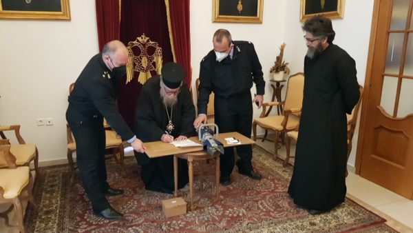 «Ας είναι…. αχρείαστο» ευχήθηκε σήμερα Παρασκευή, 11η Μαρτίου 2022, ο Σεβασμιώτατος Μητροπολίτης Καρπάθου και Κάσου κ.Αμβρόσιος στον Διοικητή της Πυροσβεστικής Υπηρεσίας Καρπάθου, Πυραγό κ. Δημήτρη Αϊβάτογλου και τον Ανθυποπυραγό κ. Αρτέμη Κοκολάκη, παραδίδοντας την ολοκαίνουρια διασωστική συσκευή, που ζητήθηκε από την Πυροσβεστική Υπηρεσία Καρπάθου.