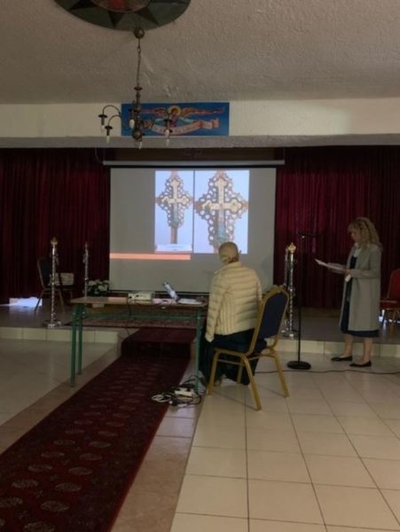 Στη συνέχεια ο Σεβασμιώτατος Μητροπολίτης Καρπενησίου κ. Γεώργιος αναφέρθηκε στο εργαστήριο συντήρησης εικόνων που λειτουργεί ήδη στη Μητρόπολή μας και έδωσε το λόγο στις υπεύθυνες του εργαστηρίου. Η κ. Έφη Γρηγοροπούλου αναφέρθηκε αρχικά στο σκοπό λειτουργίας του εργαστηρίου και στη συνέχεια η κ. Αριστέα Καλιάντα παρουσίασε ενδεικτικά έργα που έχουν ήδη συντηρηθεί. Ακολούθησε διάλογος για το πως οι πατέρες θα μπορούν να αξιοποιήσουν την ευκαιρία αυτή που τους δίνεται.