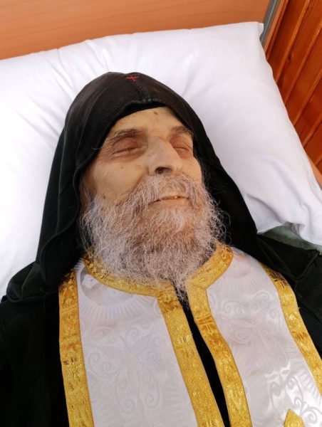Η Ιερά Μητρόπολη δημοσιεύει και μία φωτογραφία με τον μακαριστού Γέροντα στη νεκρική κλίνη.