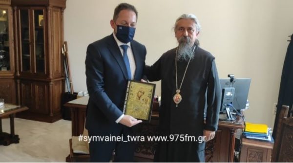 Επίσκεψη στον Σεβασμιώτατο Μητροπολίτη Καρπενησίου κ. Γεώργιο πραγματοποίησε σήμερα, Τρίτη 13 Ιουλίου 2021, ο Aναπλ. Υπουργός Εσωτερικών κ. Στυλιανός Πέτσας, στο πλαίσιο της προγραμματισμένης επισκέψεώς του στην Ευρυτανία, τόσο στην Αυτοδιοίκηση όσο και στους κοινωνικούς φορείς του τόπου. Αντικείμενο της επίσκεψης ήταν η ενημέρωση και η συνεργασία, έτσι ώστε να βρεθεί λύση στο θέμα της πανδημίας που μαστίζει τη χώρα μας.