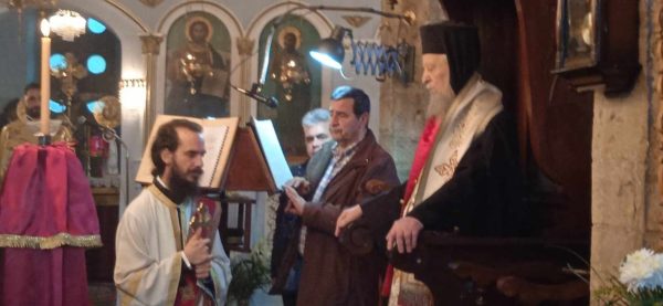 Τον Σεβασμιώτατο κ. Σεραφείμ πλαισίωσαν ο Πρεσβύτερος π. Ιωάννης Μπατής εφημέριος Καλημεριάνων Κύμης με τον Διάκονο π. Στυλιανό Πεταχτή.