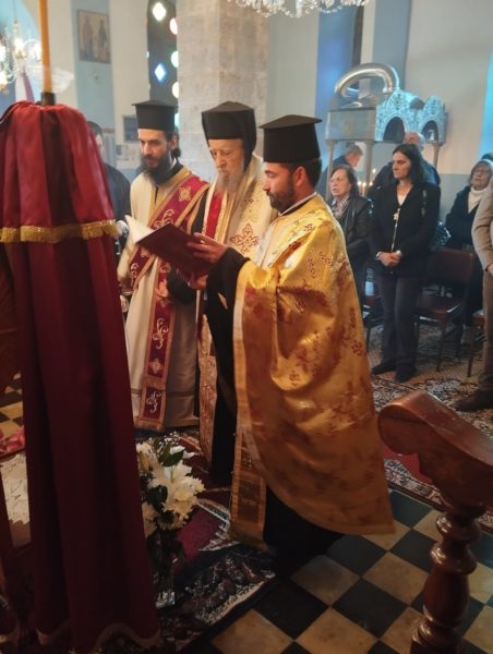 Τον Σεβασμιώτατο κ. Σεραφείμ πλαισίωσαν ο Πρεσβύτερος π. Ιωάννης Μπατής εφημέριος Καλημεριάνων Κύμης με τον Διάκονο π. Στυλιανό Πεταχτή.