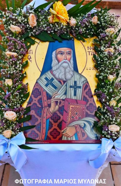 Μετά το πέρας του πανηγυρικό εσπερινού ο Σεβασμιώτατος Μητροπολίτης κ. Σεραφείμ απήυθυνε τις πατρικές και εόρτιες ευχές του προς του παρισταμένους πιστούς και ευχήθηκε την ταχεία ανάρρωση των ασθενών με την χάρη του Αγίου Νεκταρίου.
