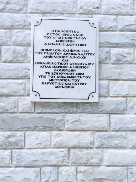 Τέλος πραγματοποιήθηκε από τον Σεβασμιώτατο κ. Σεραφείμ τα αποκαλυπτήρια της επιγραφής των εγκαινίων του ιερού ναού.