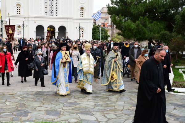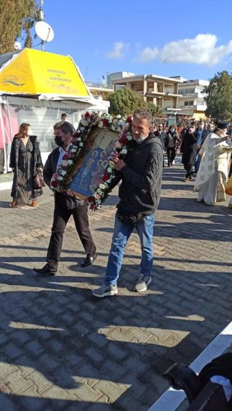 Τον Θείο Λόγο κήρυξε ο Σεβασμιώτατος και ευχήθηκε προς όλους τους πιστούς που συμμετείχαν με τα προβλεπόμενα των υγειονομικών διατάξεων. Στη συνέχεια, τέλεσε την ακολουθία του Μεγάλου Αγιασμού των Θεοφανείων, και ακολούθως στο λιμάνι του Καράβου με την συμμετοχή των τοπικών αρχών και πολλών πιστών πραγματοποιήθηκε η κατάδυση του Τιμίου Σταυρού.