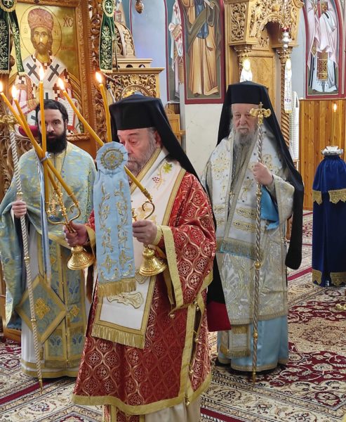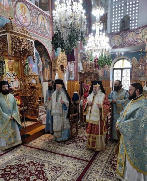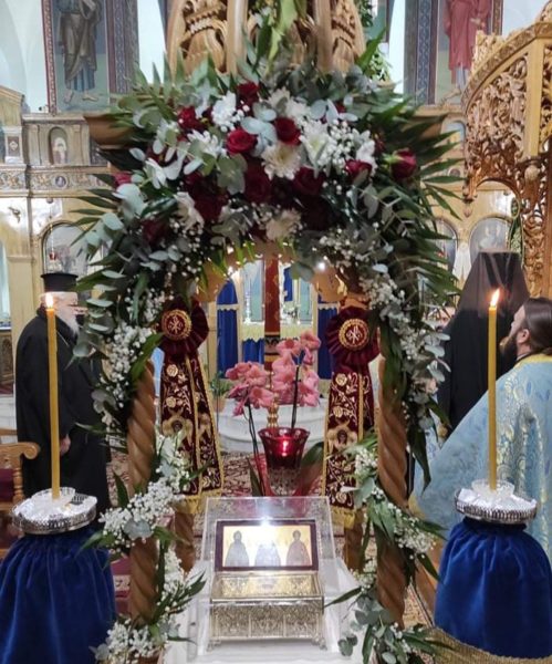 Την δε κυριώνυμο ημέρα στον προαναφερθέντα ιερό ναό κεκλεισμένων των θυρών τελέσθηκε ο Όρθρος χοροστατούντος του Σεβασμιωτάτου Μητροπολίτου Ειρηνουπόλεως κ. Νικάδρου και εν συνεχεία το Αρχιερατικό Συλλείτουργο προεξάρχοντος του Σεβασμιωτάτου Μητροπολίτου Καρυστίας και Σκύρου κ. Σεραφείμ και του Σεβασμιωτάτου Μητροπολίτου Ειρηνουπόλεως κ. Νικάνδρου πλαισιούμενοι απο τον Πρωτοσύγκελλο Πανοσ Αρχιμ Νικόδημο Πόγκα τον Πρωτοπρ Ευάγγελο Βογιατζή εφημέριο του ιερού ναού και τους Διακόνους Στυλιανό Πεταχτή και Πρόδρομο Γκέγκε.