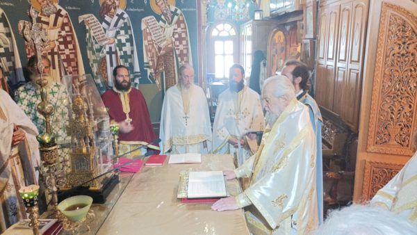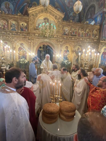Τέλος ο Σεβασμιώτατος κ. Σεραφείμ απηύθυνε τις πατρικές και εόρτιες ευχές του προς όλους τους πιστούς που τίμησαν την εορτή.