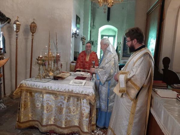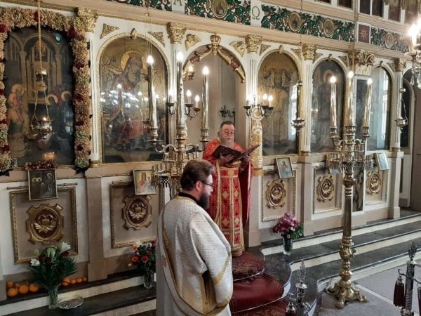 Εν συνεχεία ο Σεβασμιώτατος κ. Σεραφείμ προεξήρχε της Θείας Ευχαριστίας με συλλειτουργούς τον Πρεσβύτερο Χρήστο Φραγκίσκο εφημέριο του ιερού ναού και τους Διακόνους Στυλιανό Πεταχτή και Απόστολο Μπάκουλη.