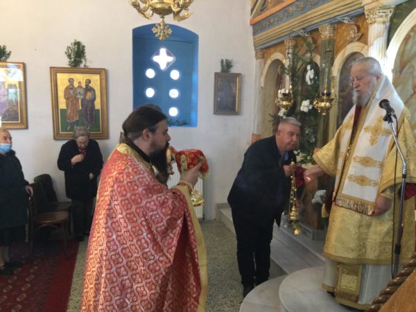 Ο Σεβασμιώτατος ήταν πλαισιούμενος από τους Οικονόμους π. Αριστείδη Ρούσσο, εφημέριο Διρρευμάτων, π.Ευάγγελο Σκιάνη, εφημέριο Αγίου Βλασίου, τον Πρεσβύτερο π. Ιωάννη Μπατή, εφημέριο Καλημεριάνων Κύμης, τον Οικονόμο π. Χρήστο Φραγκίσκο, εφημέριο Ανδρονιάνων και Ταξιαρχών και τον Διάκονο Στυλιανό Πεταχτή.