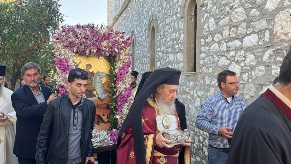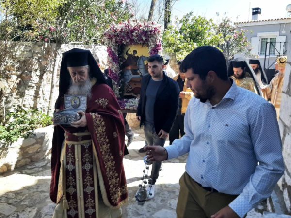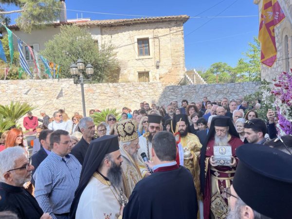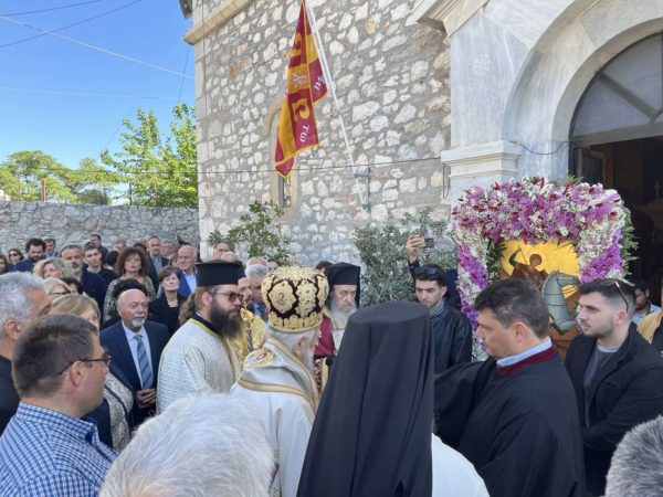 Μετά το πέρας της Θείας Ευχαριστίας ο Σεβασμιώτατος Μητροπολίτης κ. Σεραφείμ προέστη της λιτανείας της εικόνος του Αγίου Γεωργίου πέριξ του Ιερού Ναού στην οποία συμμετείχαν μεταξύ των πολλών πιστών ο Αντιπεριφερειάρχης Παιδείας κ. Αναστάσιος Βελισαρίου ο Αντιδήμαρχος κ. Γεώργιος Στρουμπούλης και άλλοι τοπικοί φορείς.