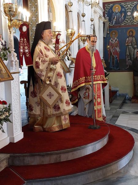 Τέλος ο Σεβασμιώτατος Μητροπολίτης κ. Νίκανδρος μετέφερε στους φιλέορτους πιστούς τις αναστάσιμες πατρικές και εόρτιες ευχές του Σεβασμιωτάτου Μητροπολίτη Καρυστίας και Σκύρου κ. Σεραφείμ.