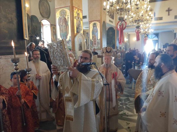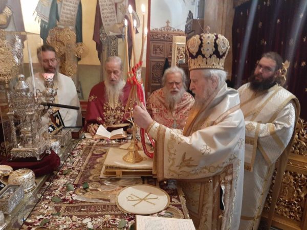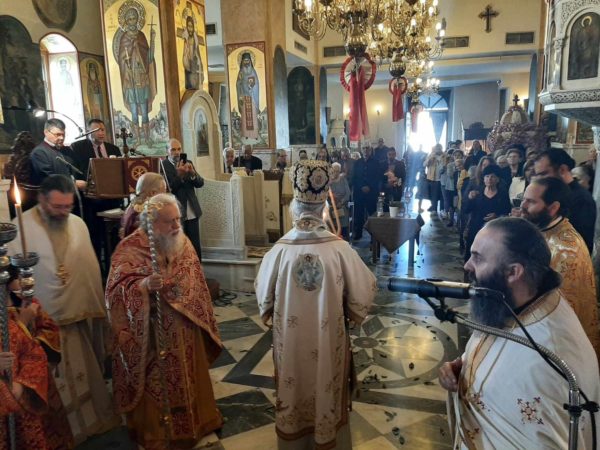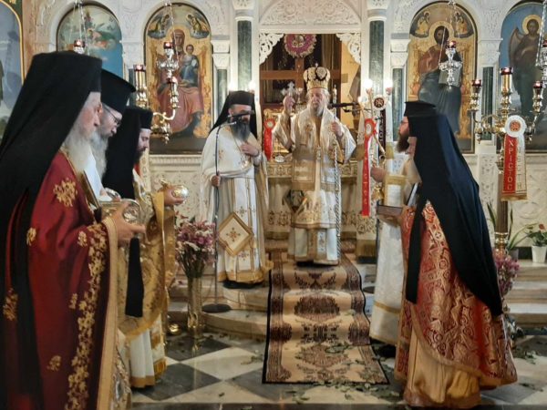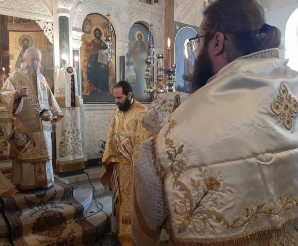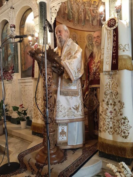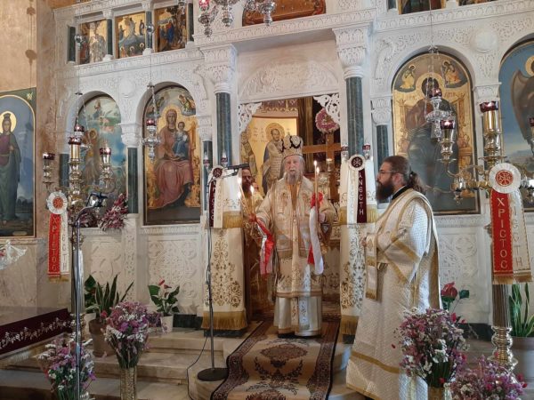 Την κυριώνυμο ημέρα με την ευκαιρία εκ μεταθέσεως της εορτής Δευτέρα Διακαινησίμου 6 Μαϊου ο Σεβασμιώτατος Μητροπολίτης Καρυστίας και Σκύρου κ. Σεραφείμ τέλεσε την Αρχιερατική Θεία Λειτουργία πλαισιούμενος από τους Πανοσ. Αρχιμανδρίτες π. Αμφιλόχιο Διακάκη, Εφημέριο Ιερού Ναού Αγίας Μαρίνης Αλιβερίου, π. Νεκτάριο Καπένη, π. Πρόδρομο Γκέγκε, π. Νικόδημο Τσιμόγιαννη, Ιεροκήρυκα της Ιεράς Μητροπόλεως και Προϊστάμενο του Ιερού Ναού, τον εορτάζοντα Πρωτοπρεσβύτερο Γεώργιο Χαρίση, Εφημέριο Ιερού Ναού Αγίων Κωνσταντίνου και Ελενής Καράβου – Αλιβερίου και τον Διάκονο Απόστολο Μπάκουλη.