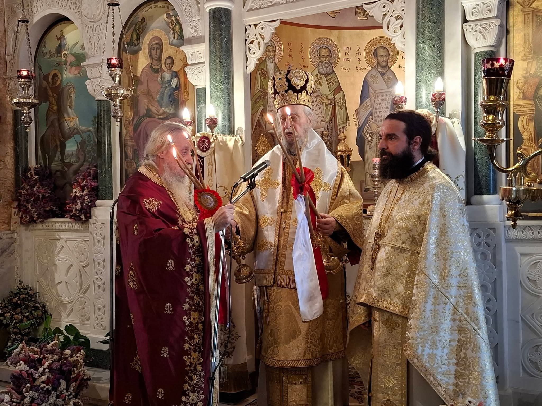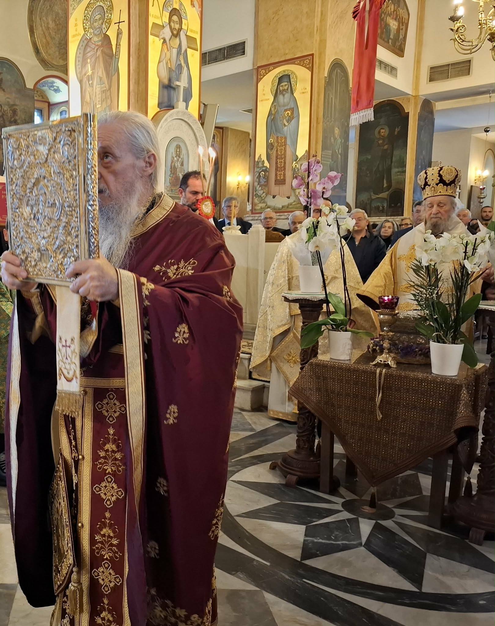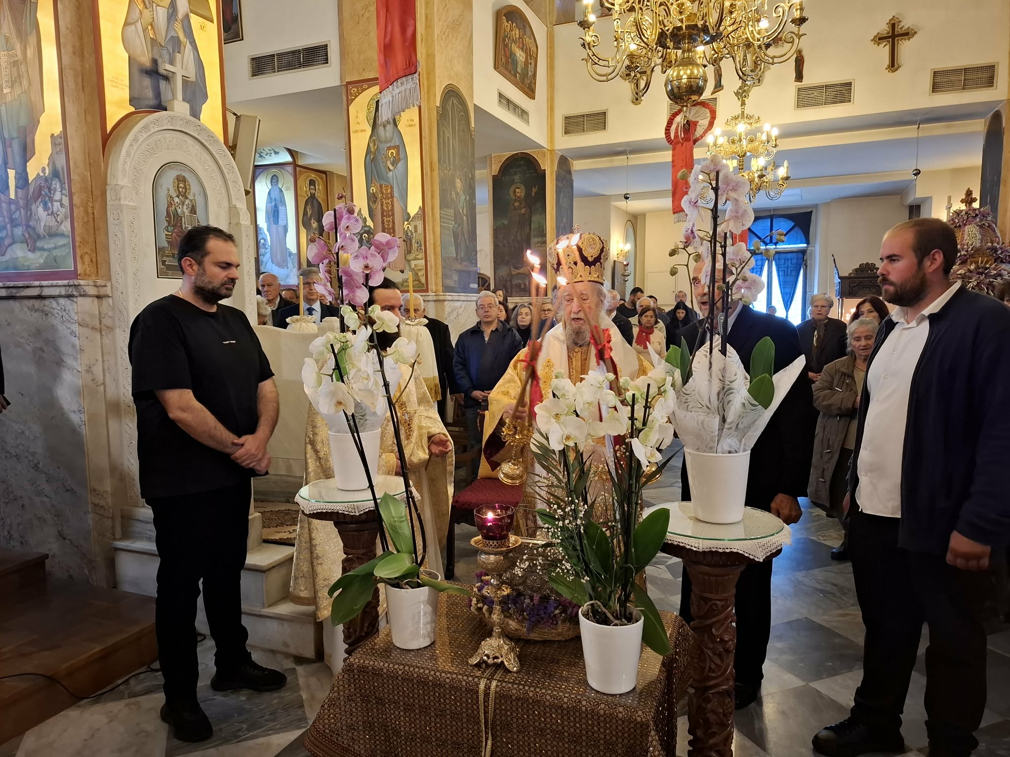 Την κυριώνυμο ημέρα της εορτής στον προαναφερθέντα Ιερό Ναό έλαβε χώρα η Αρχιερατική Θεία Λειτουργία από τον Πρύτανη της Ιεραρχίας Σεβασμιώτατο Μητροπολίτη Καρυστίας και Σκύρου κ. Σεραφείμ, ο οποίος ιερούργησε πλαισιούμενος απο τον Πρωτοσύγκελλο Πανοσ. Αρχιμ. Νικόδημο Πόγκα και τον Πανοσ. Αρχιμ. Νικόδημο Τσιμόγιαννη, Ιεροκήρυκα της Ιεράς Μητροπόλεως και εφημέριο του Ιερού Ναού.