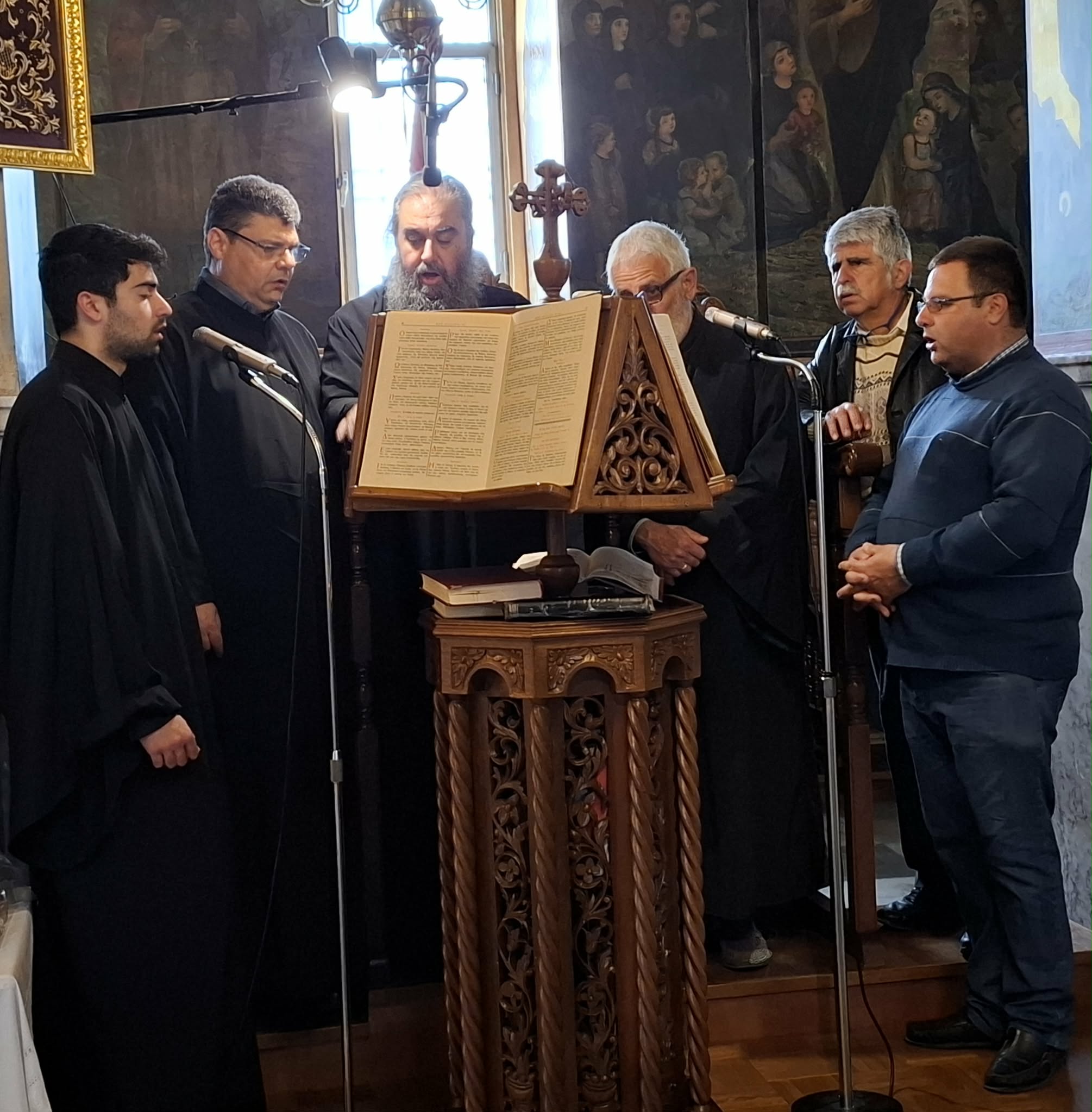 Επίσης τους ύμνους της εορτής απέδωσαν ο Διευθυντής της Σχολής Βυζαντινής Μουσικής της Ιεράς Μητροπόλεως Καρυστίας Πρωτοπρ. Σωτήριος Τσούγκας, εφημέριος Αετού επαρχίας Καρύστου, με τους ιεροψάλτες του Ιερού Ναού κ. Χαράλαμπο Μαζαράκη και κ. Αντώνιο Κακαράτζα.