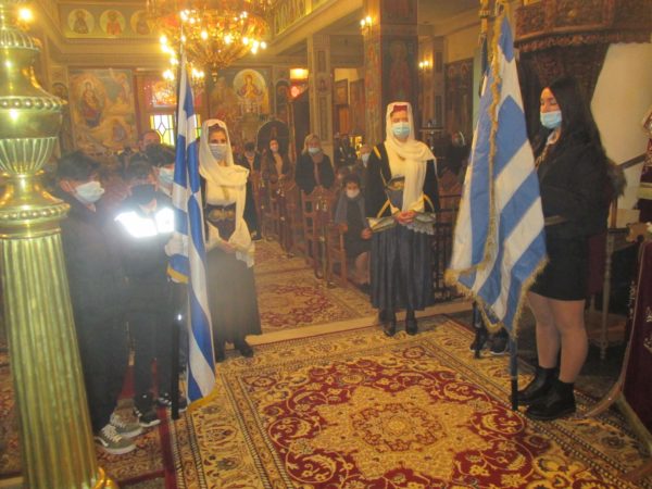 Μετά το πέρας της Θείας Ευχαριστίας ο Σεβασμιώτατος κ. Σεραφείμ ευχήθηκε καταλήλως στους πιστούς με τις εόρτιες και πατρικές ευχές του και προέστη της Δοξολογίας επι τη Εθνική Εορτή και της επιμνημοσύνου δεήσεως των πεσόντων υπέρ της πατρίδος.