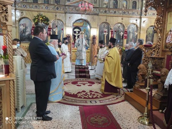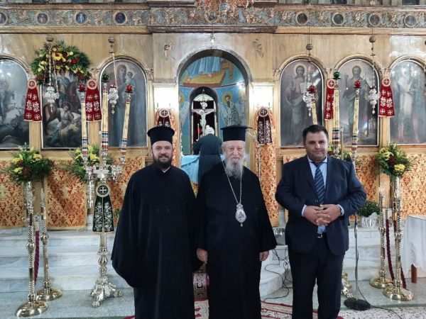 Τον θείο λόγο κήρυξε ο Σεβασμιώτατος κ. Σεραφείμ και ευχήθηκε καταλλήλως προς τους πιστούς μεταξύ των οποίων παρέστησαν ο Αντιδήμαρχος Ιωάννης Πιλάτης με τον εορτάζοντα Πρόεδρο της Τοπικής Κοινότητος Αγίου Ιωάννου Δημήτριο Λάμπρου.
