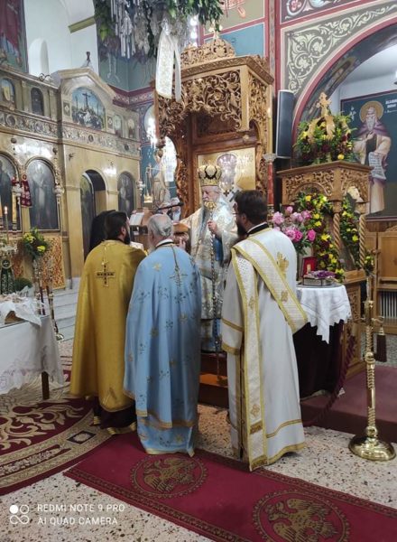 Καθώς, επίσης, στην ενορία του Αγίου Ιωάννου Αλιβερίου την παραμονή της εορτής τελέσθηκε ο Αρχιερατικός Εσπερινός, χοροστατούντος -με την άδεια και ευλογία του Σεβασμιώτατου Μητροπολίτου Καρυστίας και Σκύρου κ. Σεραφείμ- του Σεβασμιωτάτου Μητροπολίτου Ειρηνουπόλεως κ. Νίκανδρου, ο οποίος κήρυξε και τον θείο λόγο.