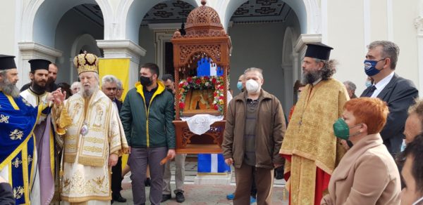 Τον θείο λόγο κήρυξε ο Σεβασμιώτατος κ. Νίκανδρος και ευχήθηκε προς τους πιστούς, που τίμησαν την εορτή του αγίου.