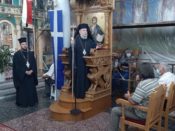 Τον θείο λόγο κήρυξε αναφερόμενος στην ευαγγελική περικοπή ο Σεβασμιώτατος κ. Σεραφείμ και τελειώντας το κήρυγμα ευχήθηκε με πατρικές ευχές του εόρτια δια την Δεσποτική Εορτή της Μεταμορφώσεως και την κατανυκτική και εόρτιο περίοδο της προλαβούσης Θεομητορικής εορτής της Κοιμήσεως της Θεοτόκου.