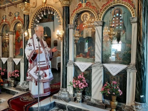 Τον θείο λόγο κήρυξε ο Σεβασμιώτατος κ. Σεραφείμ ο οποίος αναφέρθηκε στην ευαγγελική περικοπή της εορτίου ημέρας.