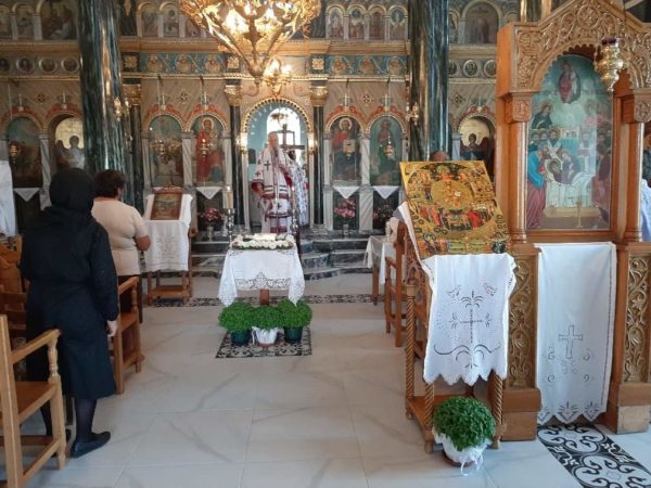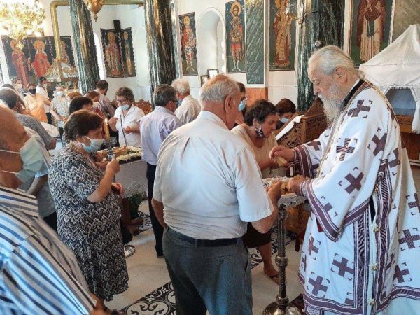 Στην Θεία Ευχαριστία συμμετείχαν οι λιγοστοί πιστοί της ενορίας καθώς και τα μέλη του εκκλησιαστικού συμβουλίου οι οποίοι υποδέχθηκαν θερμά και συνομίλησαν με τον Σεπτό Ποιμενάρχη τους ώστε να λάβουν την ευλογία του, καθώς επίσης να προσκυνήσουν ιερά λείψανα αγίων τα οποία φυλάσονται στον ιερό ναό και αποτελούν την ευλογία προς όλους τους πιστούς και τιμώνται ευλαβικά ταύτην την ημέρα της Κυριακής των Αγίων Πάντων.