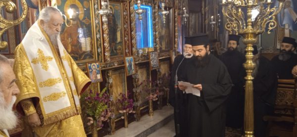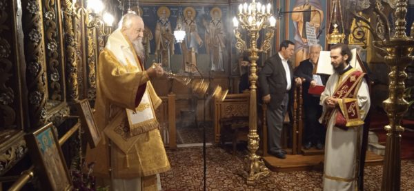 Μετά το πέρας της Θείας Λειτουργίας τον Σεβασμιώτατο Μητροπολίτη κ. Σεραφείμ προσφώνησε καταλλήλως εξ ονόματος κλήρου και λαού ο Πρωτοσύγκελλος της Ιεράς Μητροπόλεως Αρχιμανδρίτης π. Νικόδημος Πόγκας εκφράζοντας τις θερμές ευχαριστίες προς το πρόσωπο του Ποιμενάρχου στο πηδάλιο της Ιεράς Μητροπόλεως και για την πολυετή καρποφόρο και ποιμαντική μέριμνα του Επισκόπου προς όλο το χριστεπώνυμο πλήρωμα της Ιεράς Μητροπόλεως.