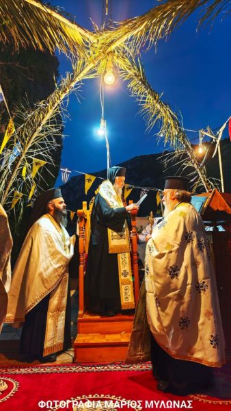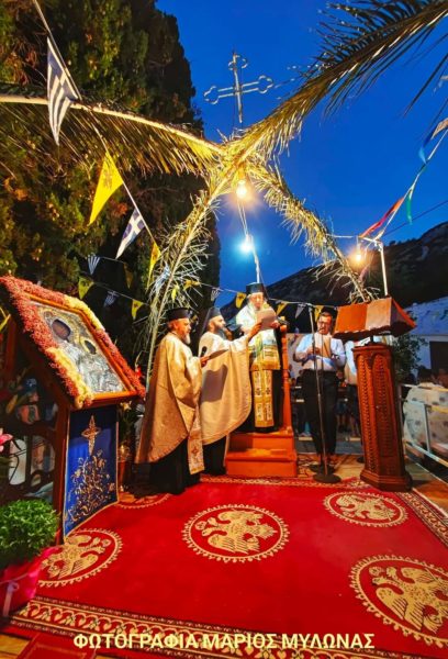 Την κυριώνυμο ημέρα της θεομητορικής εορτής στον προαναφερθέντα Ιερό Ναό τελέσθηκε η Αρχιερατική Θεία Λειτουργία προεξάρχοντος του Σεβασμιωτάτου Μητροπολίτου Καρυστίας και Σκύρου κ. Σεραφείμ με συλλειτουργούς τον Γενικό Αρχιερατικό Επίτροπο Πρωτοπρ. Ελευθέριο Σταμπέλο και τον Διάκονο Στυλιανό Πεταχτή.
