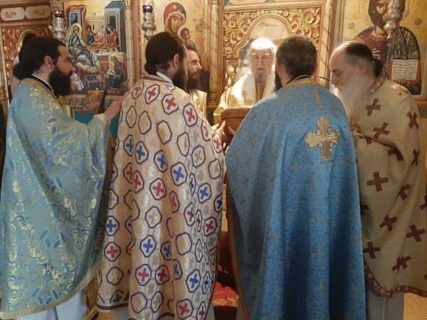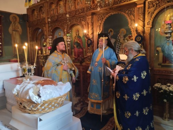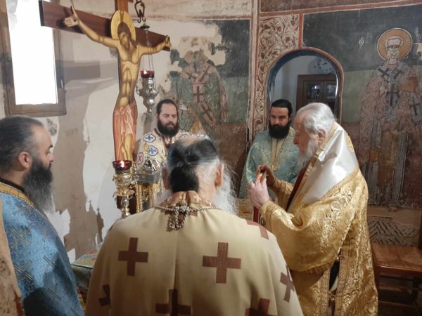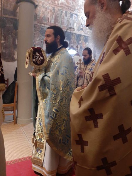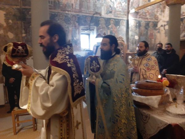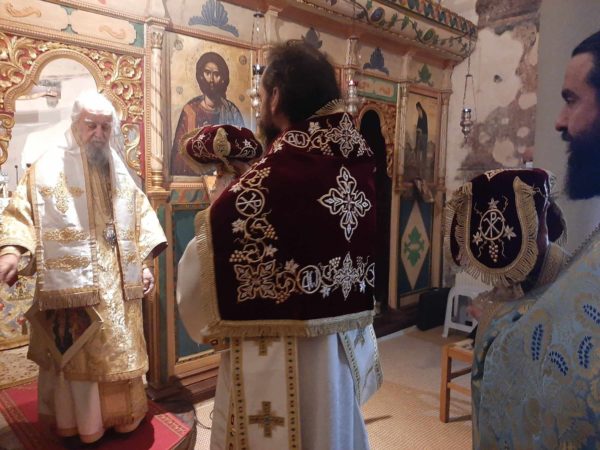 Ο Σεβασμιώτατος συμπαραστάθηκε από τον Πρωτοσύγκελλο Πανοσ. Αρχιμ. Νικόδημο Πόγκα, τους Πανοσ. Αρχιμ. π.Αρσένιο Τριαντάφυλου, π. Νεκτάριο Καπενή, π. Πρόδρομο Γκέγκε, αδελφούς της ιεράς μονής και τον Διάκονο Στυλιανό Πεταχτή.