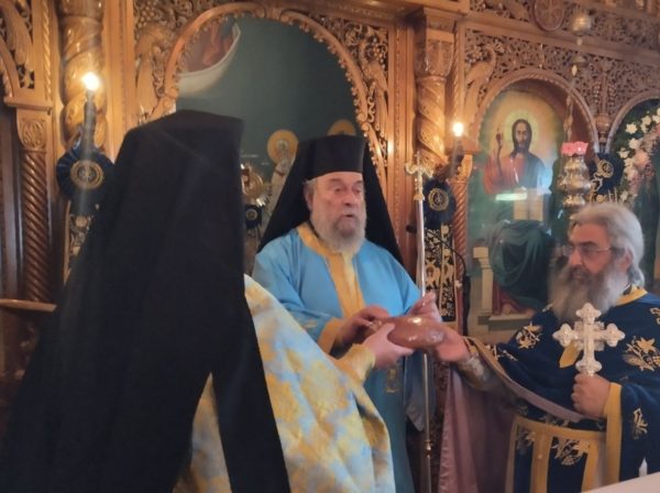 Προ της απολύσεως ο Σεβασμιώτατος Μητροπολίτης Ειρηνουπόλεως κ. Νίκανδρος ευλόγησε τους προσφερθέντες άρτους και ακολούθως μετέφερε στους πιστούς της ενορίας εν όψει της εορτής τις πατρικές και εόρτιες ευχές του Σεβασμιωτάτου Ποιμενάρχου Μητροπολίτου Καρυστίας και Σκύρου κ. Σεραφείμ.