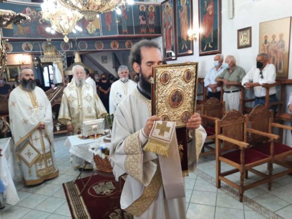 Επίσης αναφέρθηκε στην σημασία των Ιερών Λειψάνων και κάλεσε το Χριστεπώνυμο πλήρωμα να ασπασθεί με ευλάβεια τα χαρυτόβρυτα λέιψανα τα οποία οι αοίδιμοι διατελέσαντες ιερείς της ενορίας φρόντισαν ώστε να διαφυλαχθούν έως και σήμερα στον ιερό ναό προς ευλογία και πνευματική ενίσχυση των πιστών της.