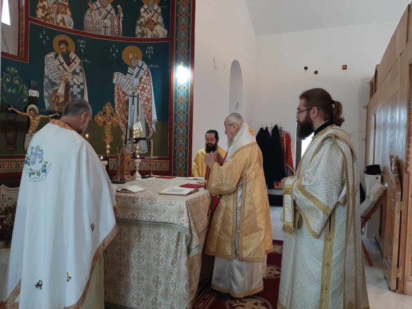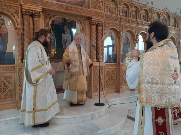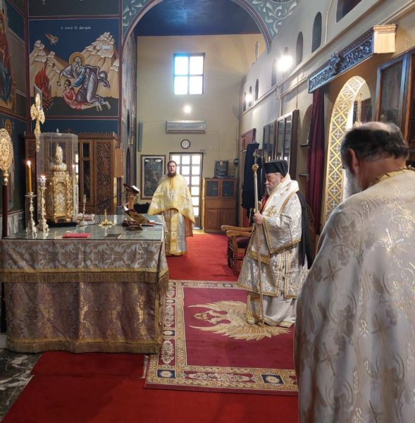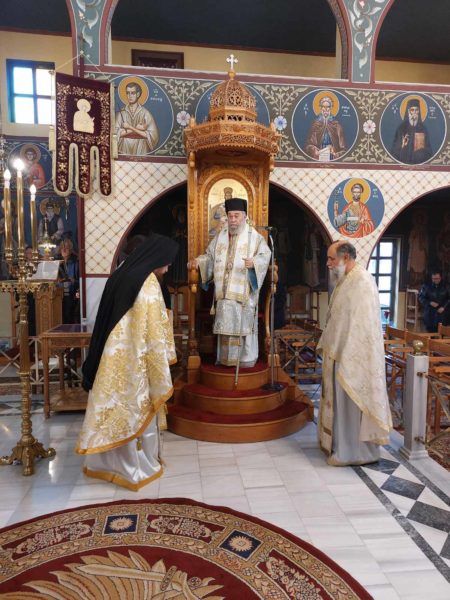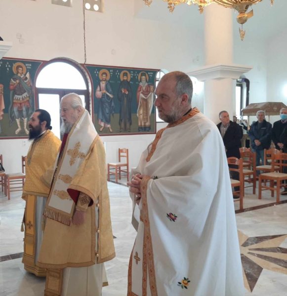 Τον Σεβασμιώτατο Μητροπολίτη Ειρηνουπόλεως κ. Νίκανδρο πλαισίωσαν ο Αρχιερατικός Επίτροπος Καρύστου Πανοσ. Αρχιμανδρίτης Γεράσιμος Παρίσης με τον Πρωτοπρεσβύτερο Αθανάσιο Νόβα εφημέριο του ιερού ναού.