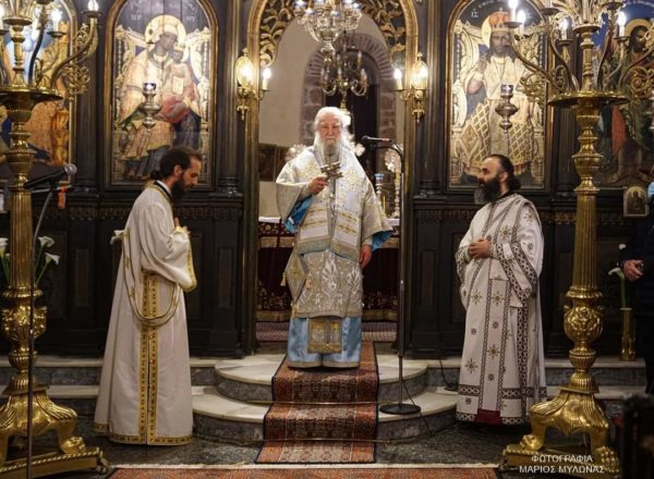 Εκ του αναλογίου έψαλε ο Πρωτοψάλτης του Μητροπολιτικού Ναού κ. Ευάγγελος Στάμου με την συμμετοχή άλλων ιεροψαλτών.