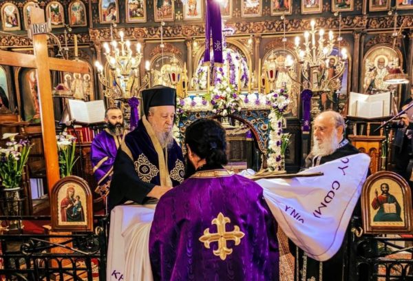 Εν συνεχεία, με την τέλεση των Μεγάλων Ωρών και του Εσπερινού της Αποκαθηλώσεως πριν το πέρας της ακολουθίας εψάλλει ενώπιον του Επιταφίου το επισφραγιστικό δοξαστικό «Σε τον Αναβαλλόμενον», το οποίο απέδωσε ο Σεβασμιώτατος κ. Σεραφείμ με του ιερείς και ιεροψάλτες δίνοντας μία κατανυκτική ατμόσφαιρα ρίγης και δέους προς συμμετέχοντες πιστούς που συμπροσευχήθηκαν στην κατανυκτική ακολουθία στους οποίους ευχήθηκε ο Σεβασμιώτατος.
