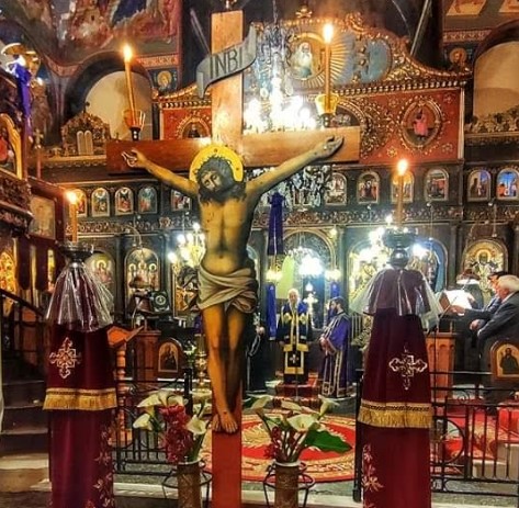 Η ιερά ακολουθία κορυφώθηκε με την έξοδο του Εσταυρωμένου όπου εψάλει το Δοξαστικό Σήμερον Κρεμάται επι Ξύλου ενώπιον του Εσταυρωμένου από τον Σεβασμιώτατο κ. Σεραφεϊμ και τον Πρωτοψάλτη του Μητροπολιτικού Ναού κ. Ευάγγελο Στάμου με την συμμετοχή των πιστών που συνέρευσαν στην κατανυκτική ακολουθία.