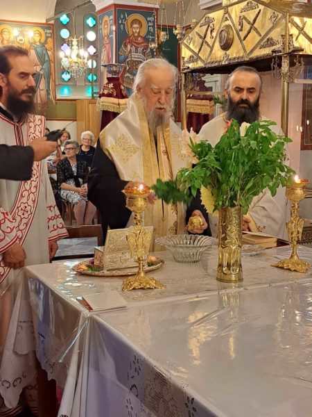 Την Κυριακή 28 Ιουλίου στον ιερό ναό των Αγίων Αναργύρων ο Σεβασμιώτατος Μητροπολίτης κ. Σεραφείμ τέλεσε την Αρχιερατική Θεία Λειτουργία συμπαραστατούμενος από τον Αρχιμ. Πρόδρομο Γκέγκε, τον Πρεσβύτερο Γεώργιο Καρβέλη, εφημέριο του ιερού ναού, και τον Διάκονο Στυλιανό Πεταχτή.