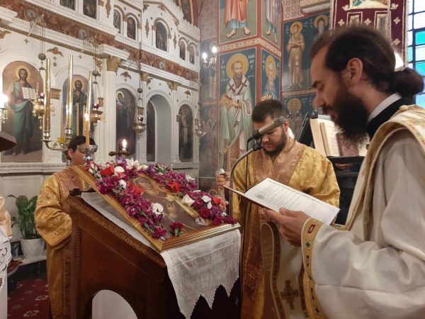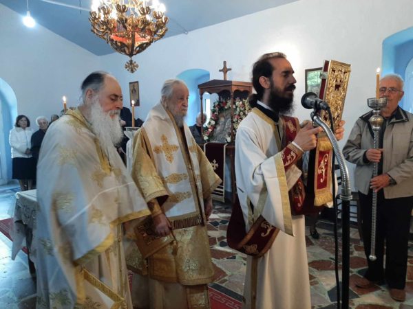 Με τον Σεβασμιώτατο κ. Σεραφείμ συλλειτούργησαν ο αδελφός της Ιεράς Μονής Τιμίου Προδρόμου Καρυών – Αχλαδερής Πανοσ. Αρχιμ. Αρσένιος Τριανταφύλου εφημέριος της ενορίας, και ο Διάκονος Στυλιανός Πεταχτής.