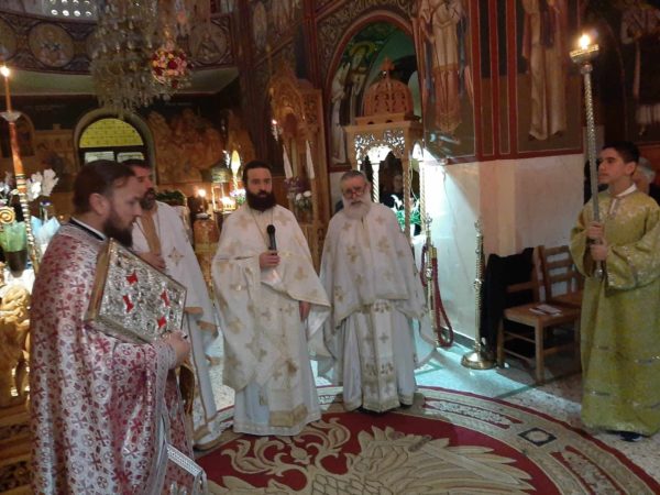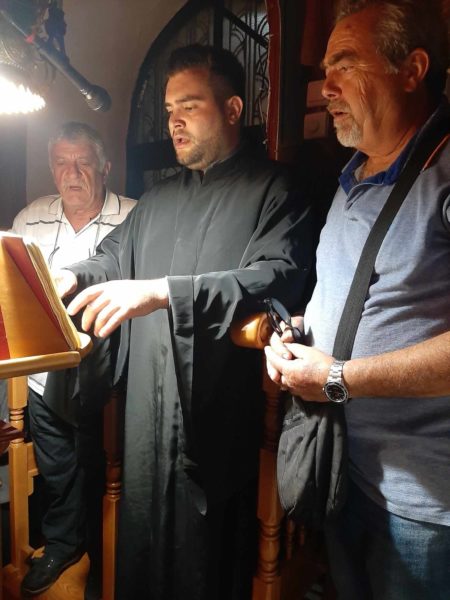 Τους ύμνους στην αγρυπνία απέδωσαν οι Ιεροψάλτες Δημήτριος Πετρογιάννης ιερού ναού Αγίου Νικολάου Ερέτριας και ο Αναγνώστης Αναστάσιος Ρέτσας ιερού ναού Ευαγγελισμού της Θεοτόκου Περιβολίων.