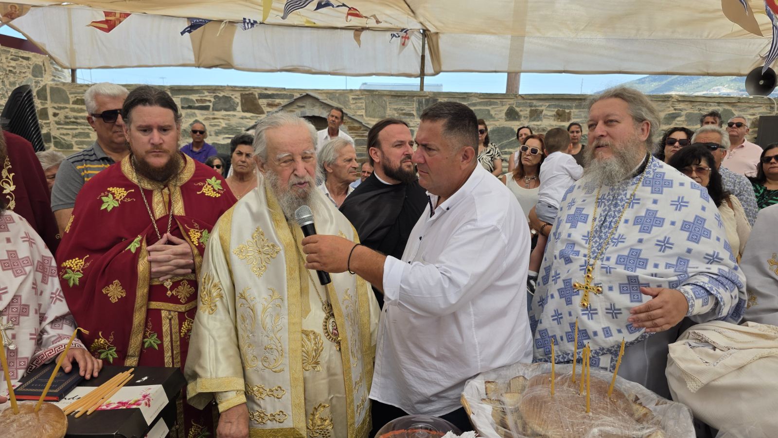 Τέλος ο Σεβασμιώτατος κ. Σεραφείμ επαίνεσε και τον φιλάγιο κτήτορα κ. Νεκτάριο Ντόλο ο οποίος προέβη στην ανέγερση του ιερού παρεκλησίου και αποτελεί την πνευματική ευλογία της χάριτος των Αγίων για την ευρύτερη περιοχή της Καρύστου.