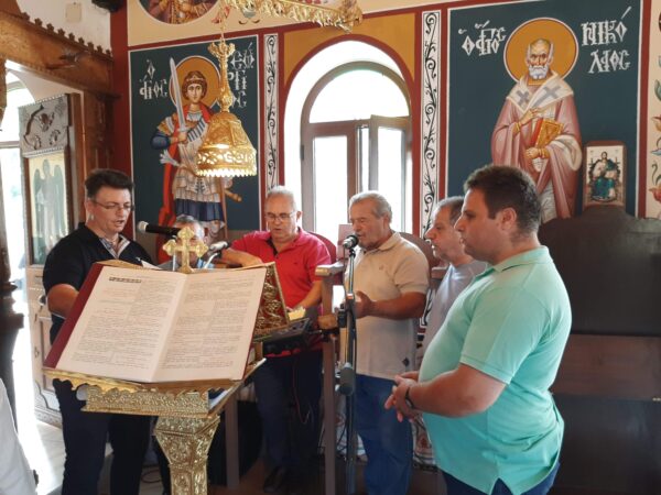 Επίσης στο αναλόγιο του ιερού ναού έψαλαν η 6μελής χορωδία του Ιερού Μητροπολιτικού Ναού Αγίου Αθανασίου Κύμης με χοροράρχη τον Μουσικολογιώτατο Πρωτοψάλτη του κ. Ευάγγελο Στάμου.